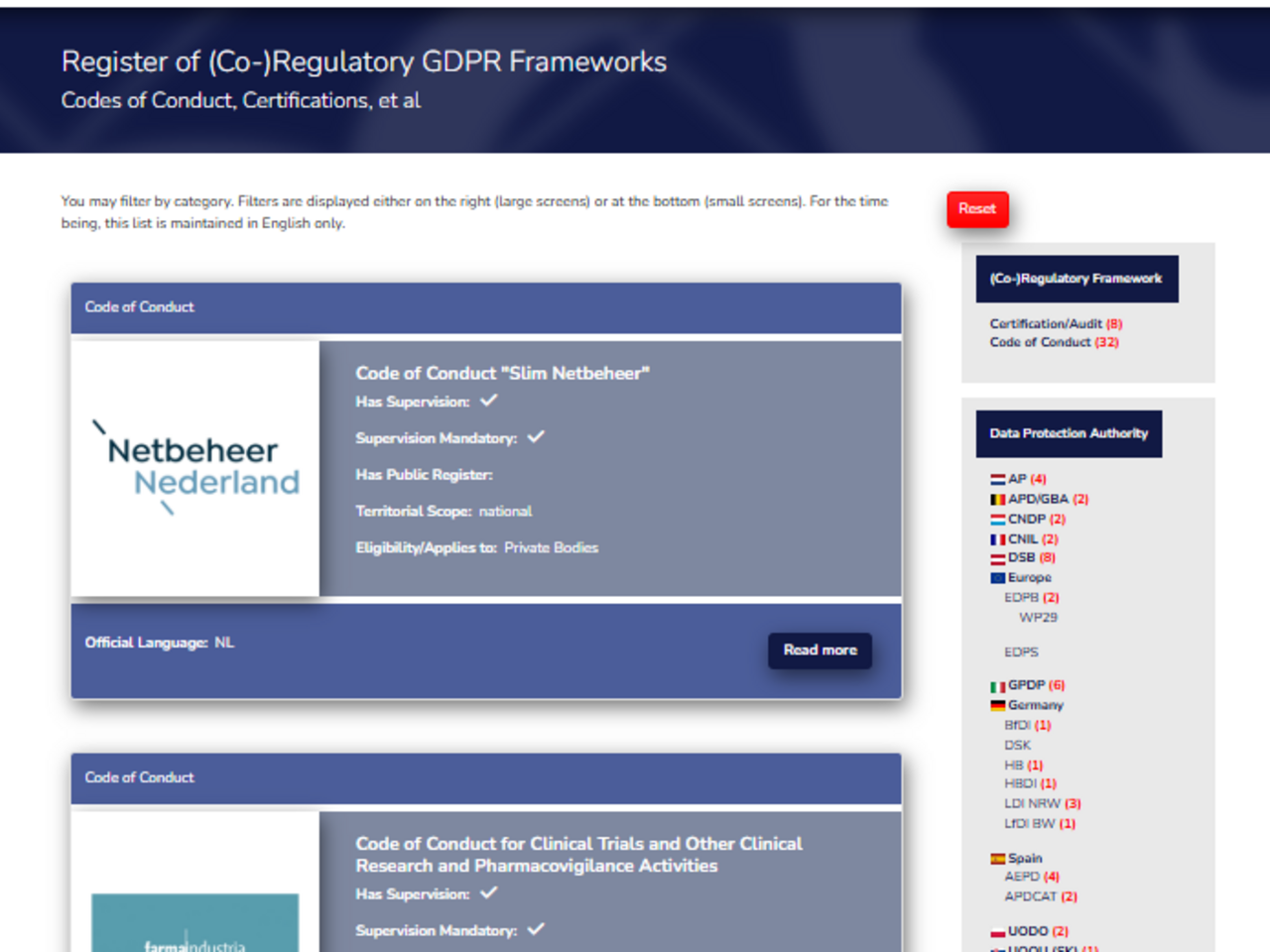 • Open the Register: Register of (Co-)Regulatory GDPR Frameworks