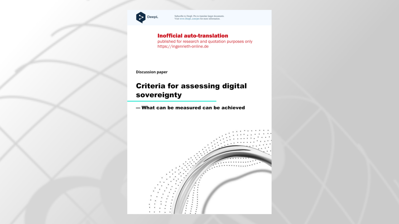 As of beginning of April 2026, Zentrum für Digitale Souveränität der Öffentlichen Verwaltung (ZenDiS; englisch Center for Digital Sovereignty of Public Administration) published its discussion paper on draft criteria for digital sovereignty.